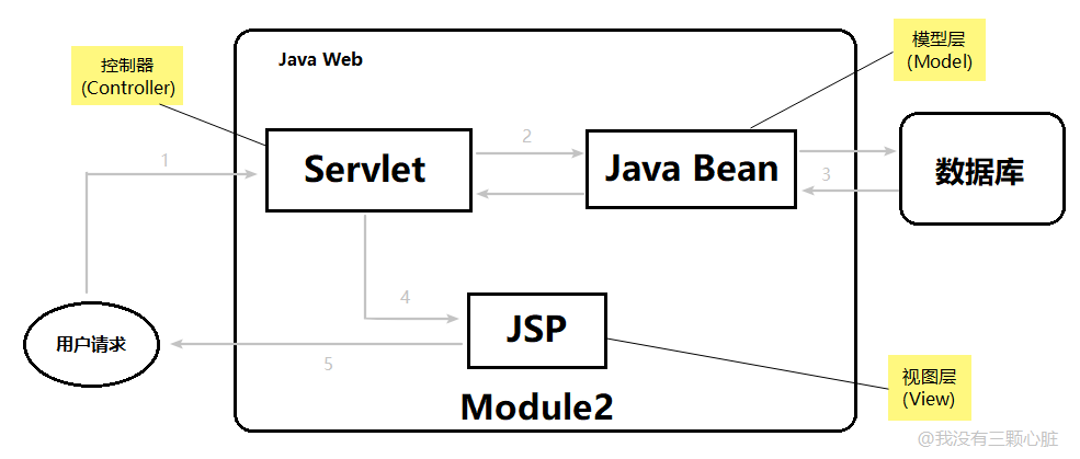 在 SpringMVC 中这三者分别就对应 Servlet,JSP,JavaBean