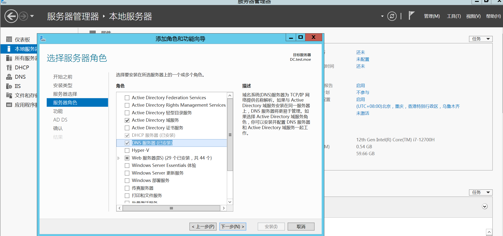 接下来安装域控制器与 DNS 服务,服务器管理器-管理-添加角色和功能
