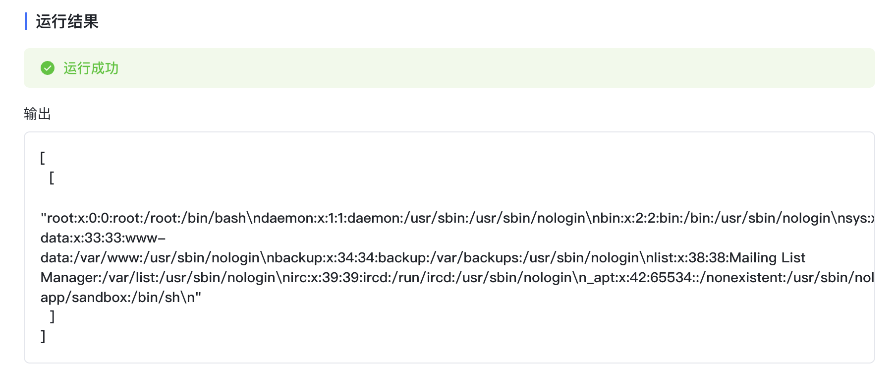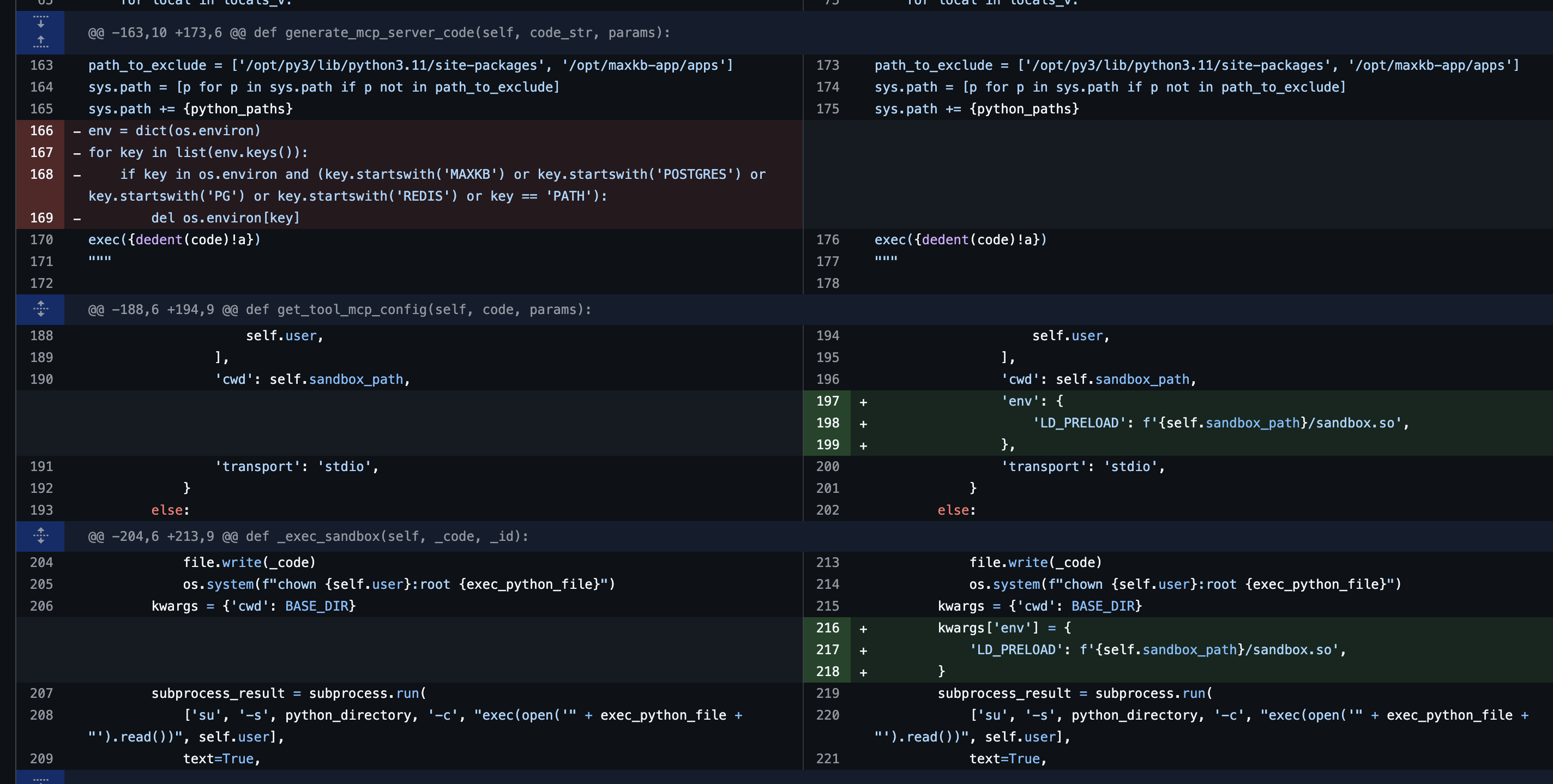 # environ({'LD_PRELOAD': '/opt/maxkb-app/sandbox/sandbox.so', 'HOME': '/opt/maxkb-app/sandbox', 'SHELL': '/opt/py3/bin/python', 'USER': 'sandbox', 'LOGNAME': 'sandbox', 'MAIL': '/var/mail/sandbox', 'LC_CTYPE': 'C.UTF-8'})