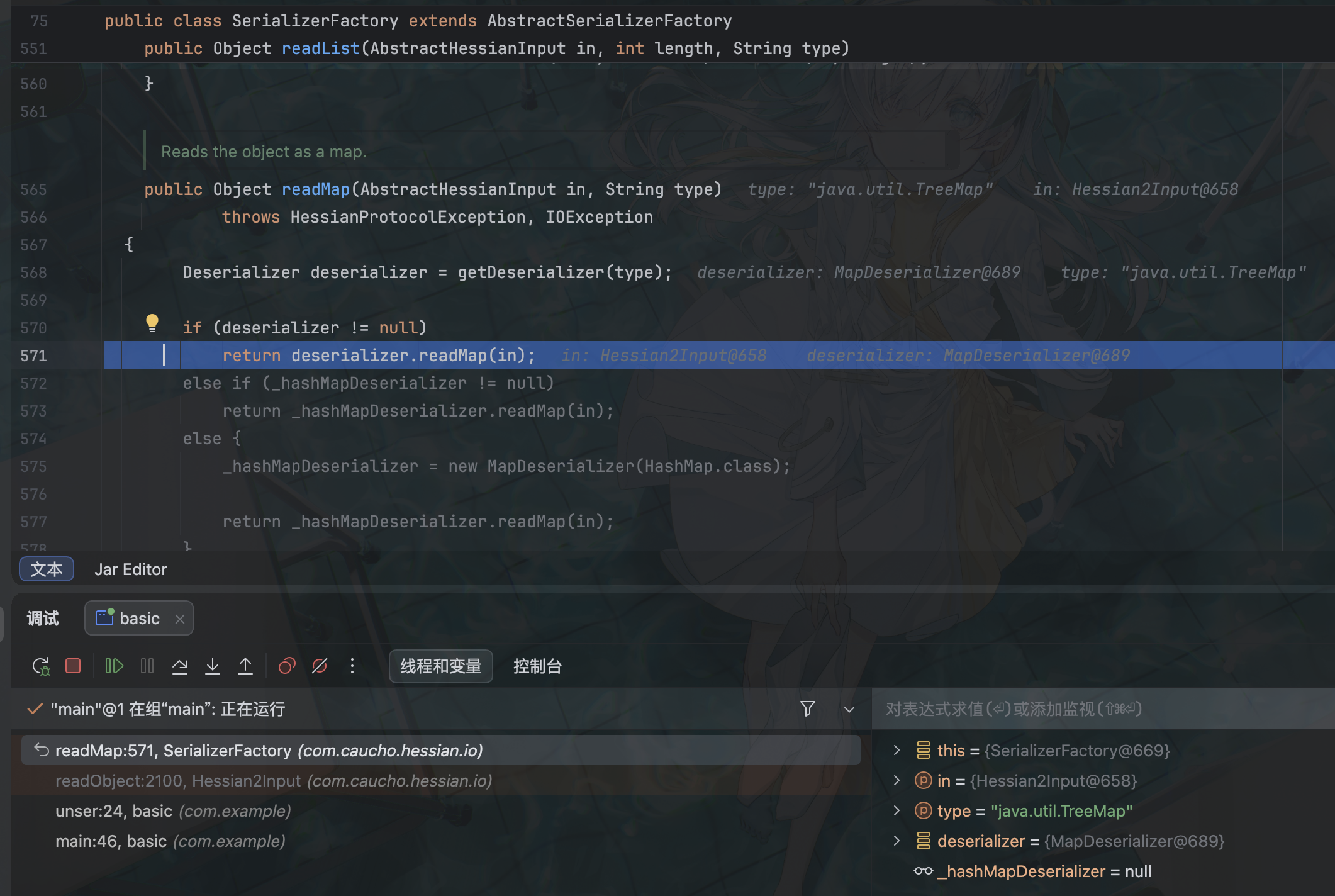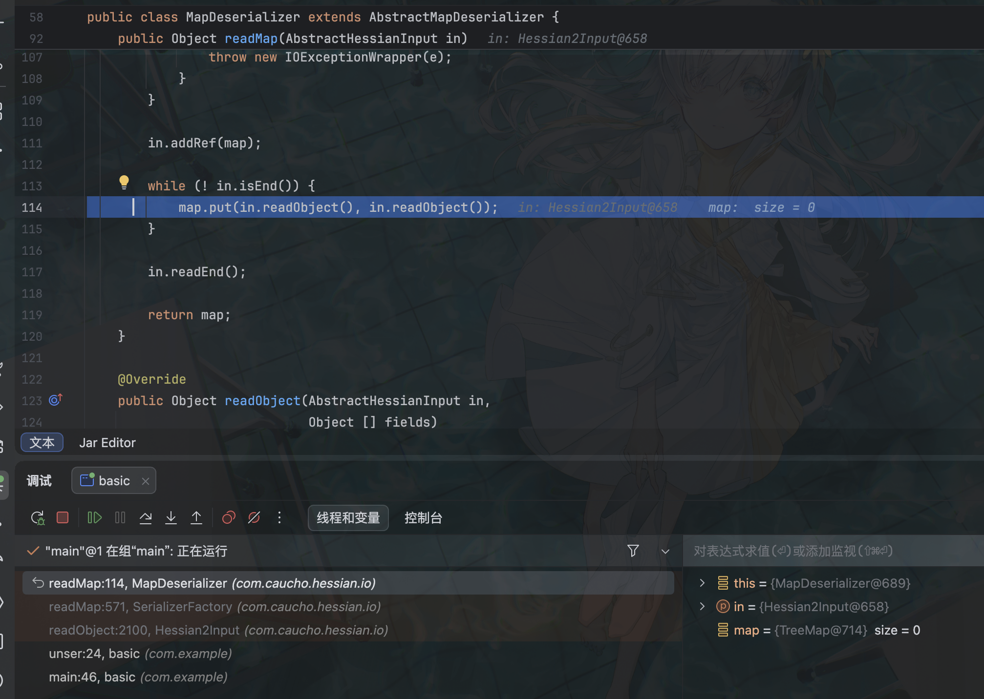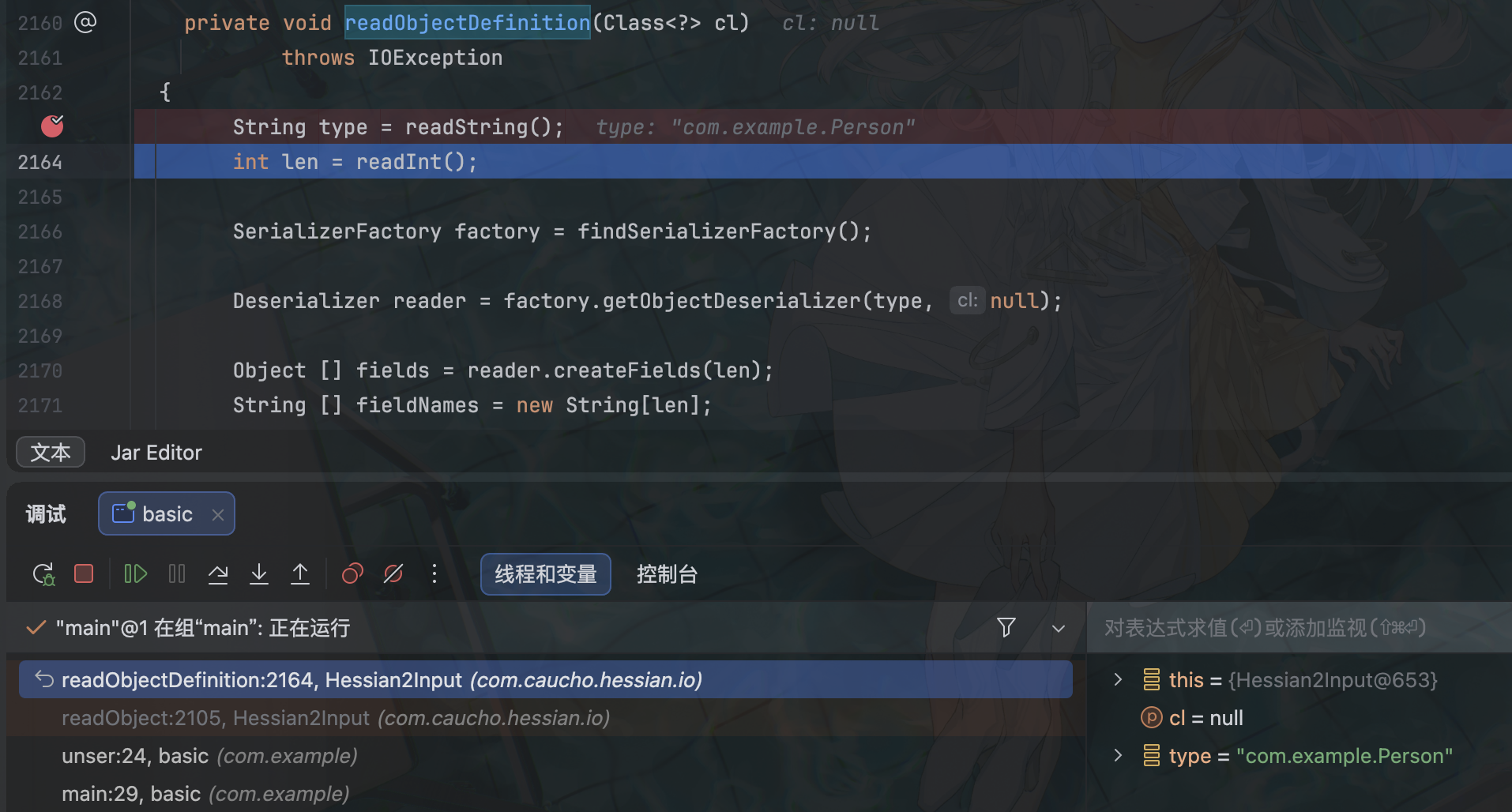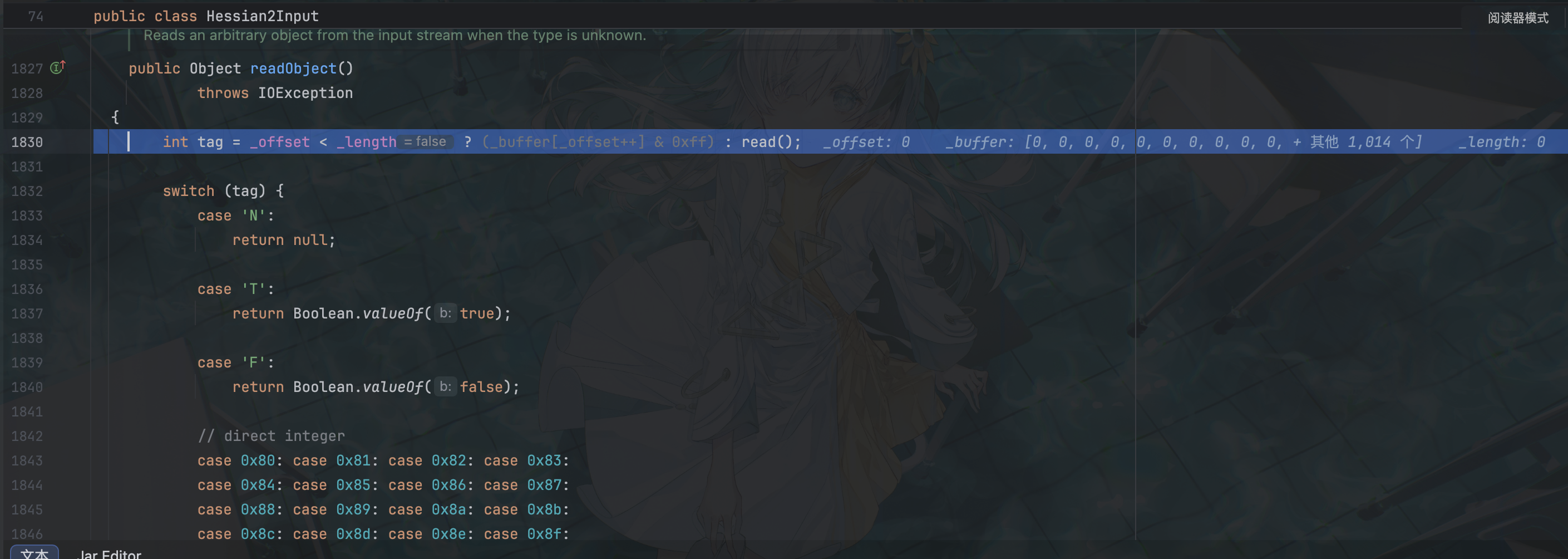 调试一下,直接从 hessian2Input.readObject() 这里开始