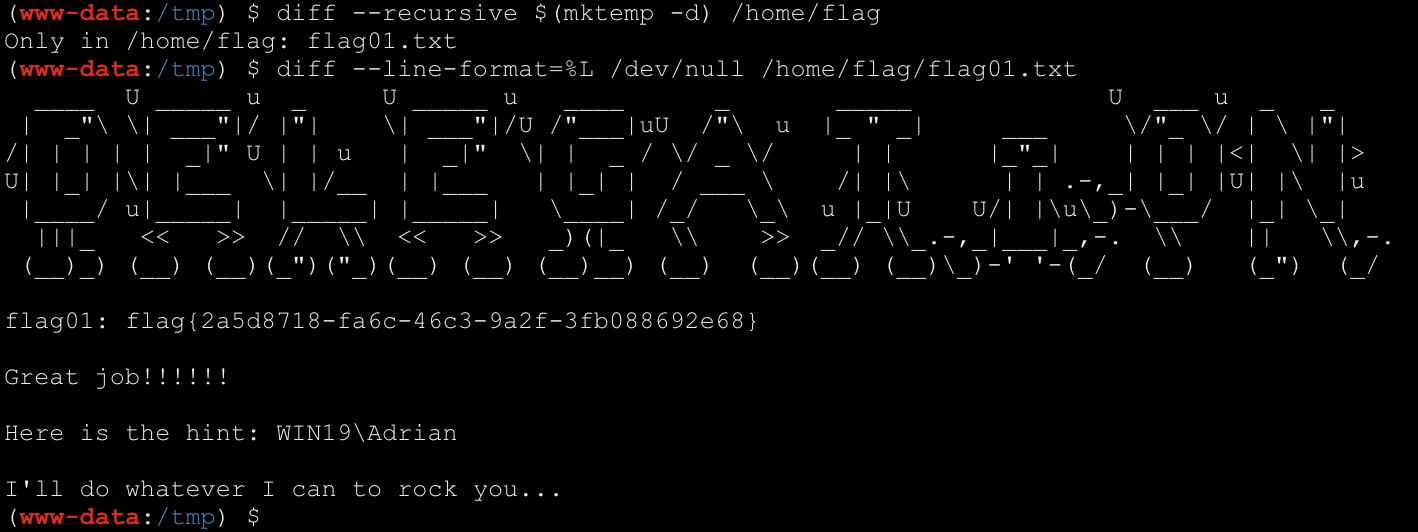 diff --recursive $(mktemp -d) /home/flag