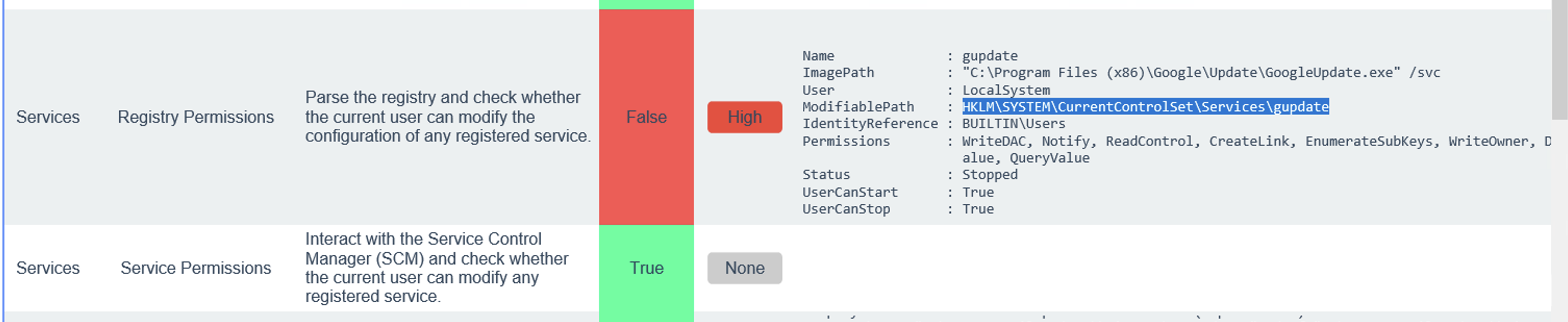 扫描报告显示有对该 SYSTEM 服务的注册表路径修改的权限,那么就利用这个注册表提权