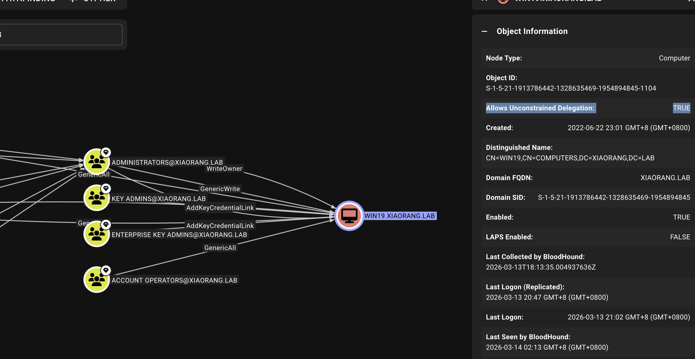 发现 WIN19 配置了非约束委派